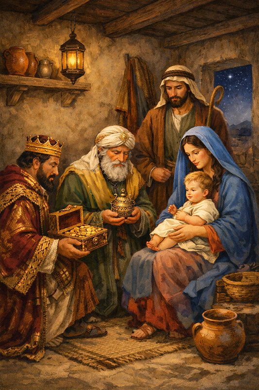 When they saw the star, they rejoiced with exceedingly great joy. They came into the house and saw the young child with Mary, his mother, and they fell down and worshiped him. Opening their treasures, they offered to him gifts: gold, frankincense, and myrrh.—Matthew 2:10-11 (WEB)